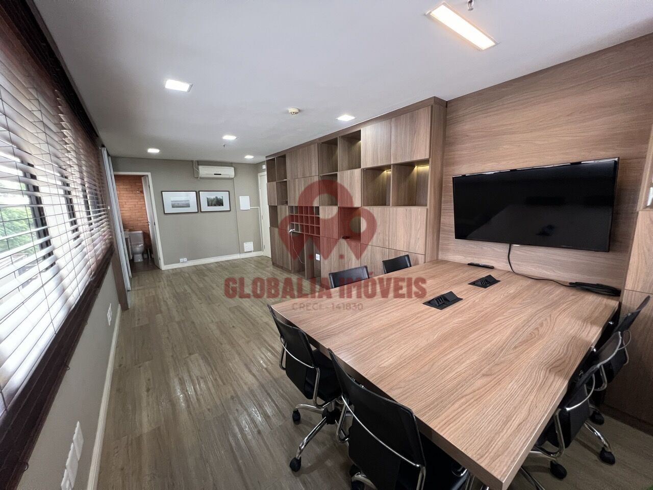 Excelente Sala Comercial pronta para ser ocupada, possui fino acabamento, se encontra totalmente equipada com mesa, cadeiras, TV, dois aparelhos de ar-condicionado e, um banheiro e uma vaga na garagem.